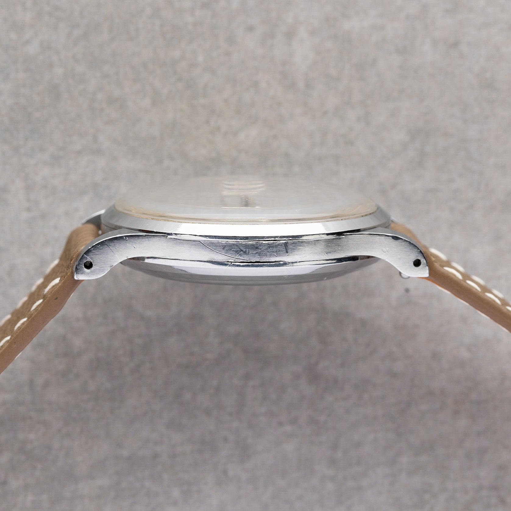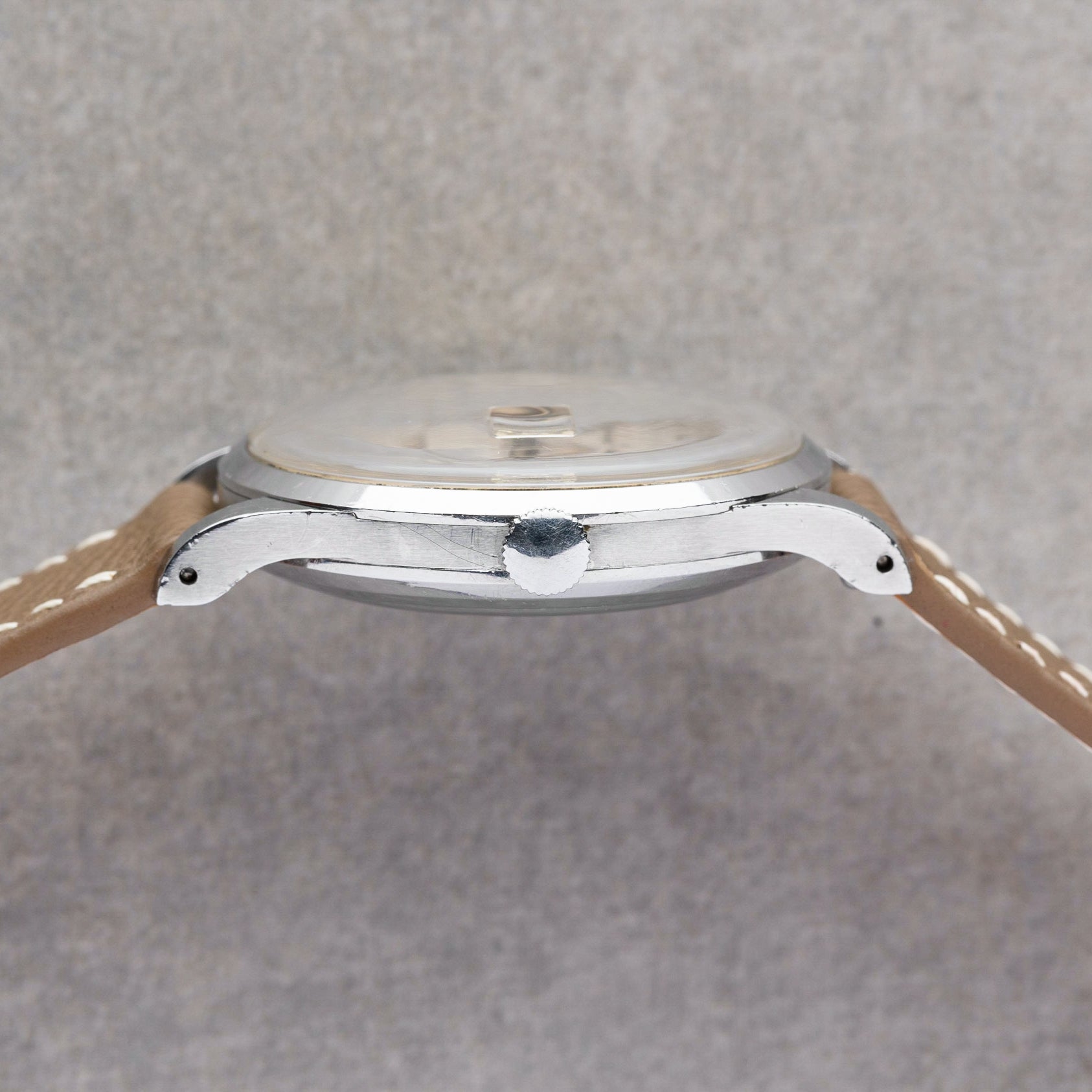 Points of Mention - Even Cream Patina on dial, Case lugs lightly polished, Small ding on crystal edge at 6