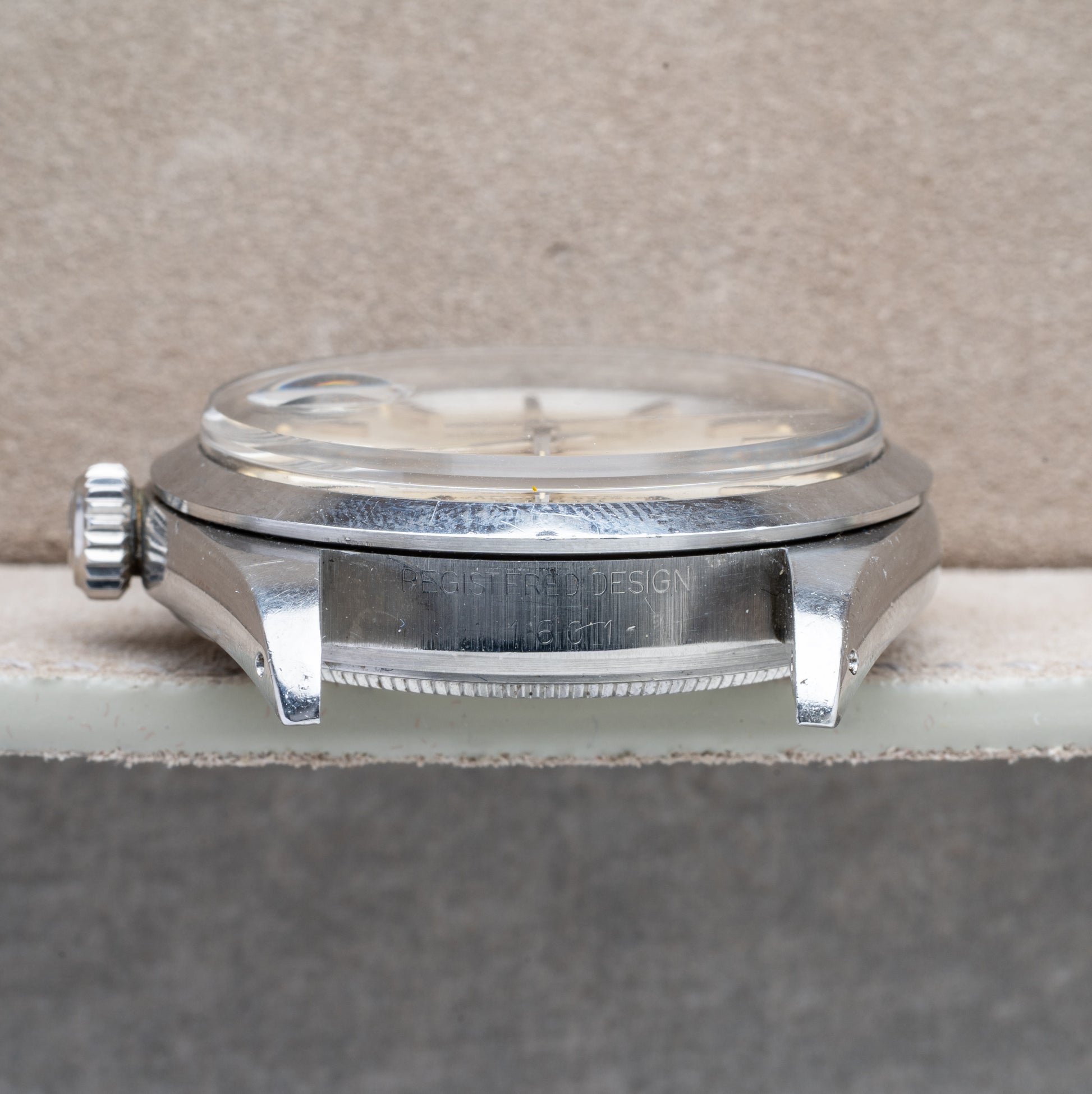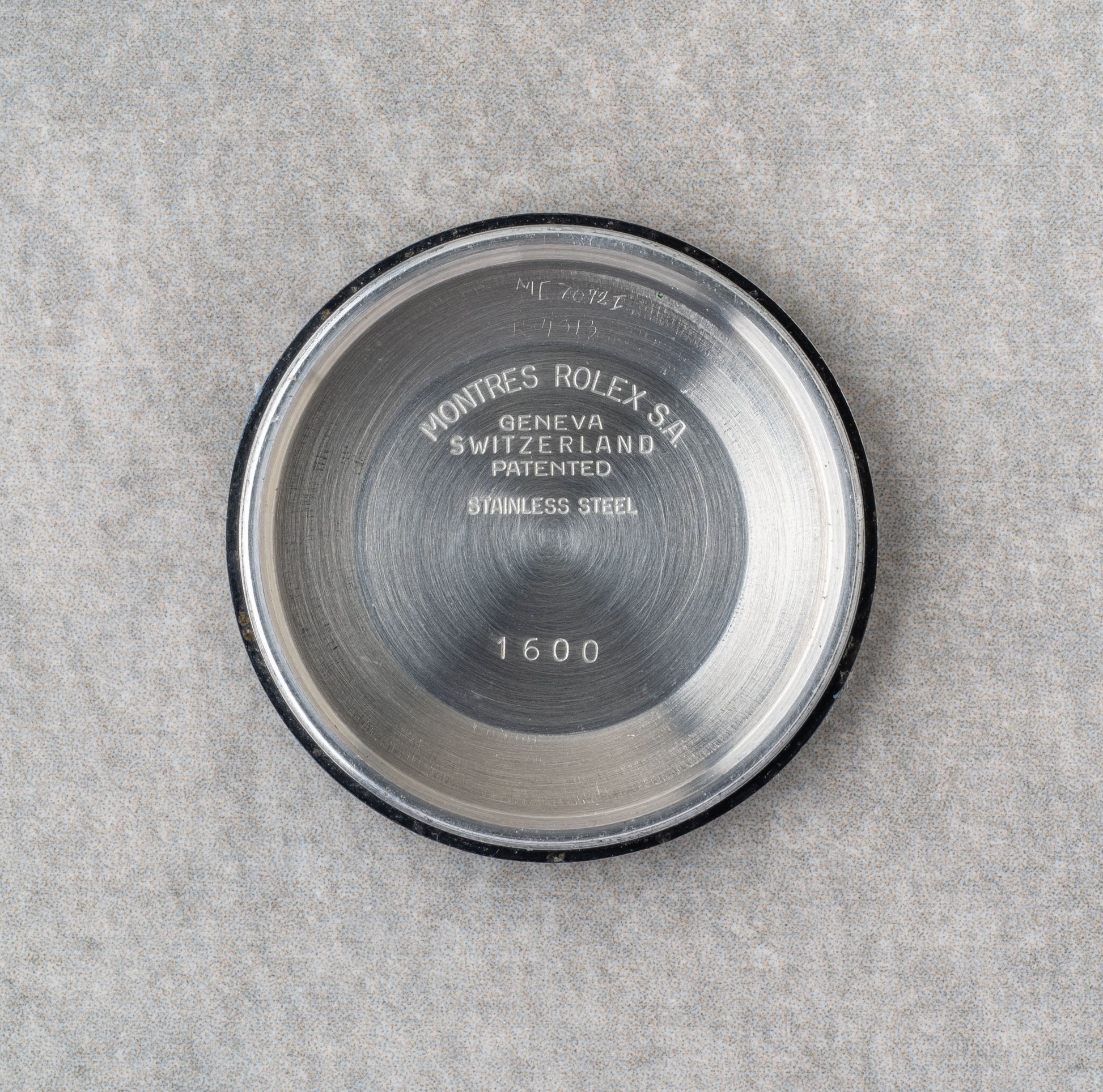 Stainless Steel Case with Drilled Lugs (1601 on one side, serial number on the other)