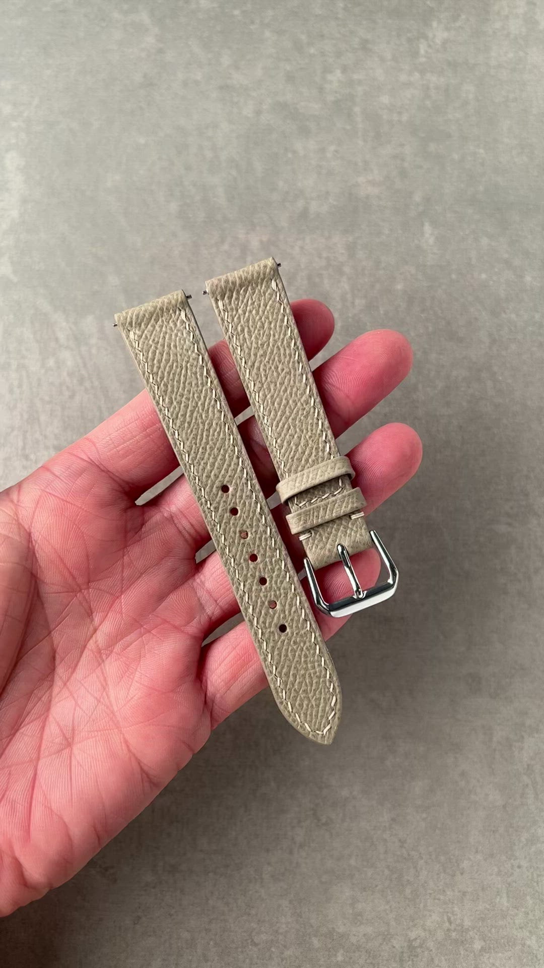 Genuine French Epsom Watch Strap in Light Grey with Cream Stitch