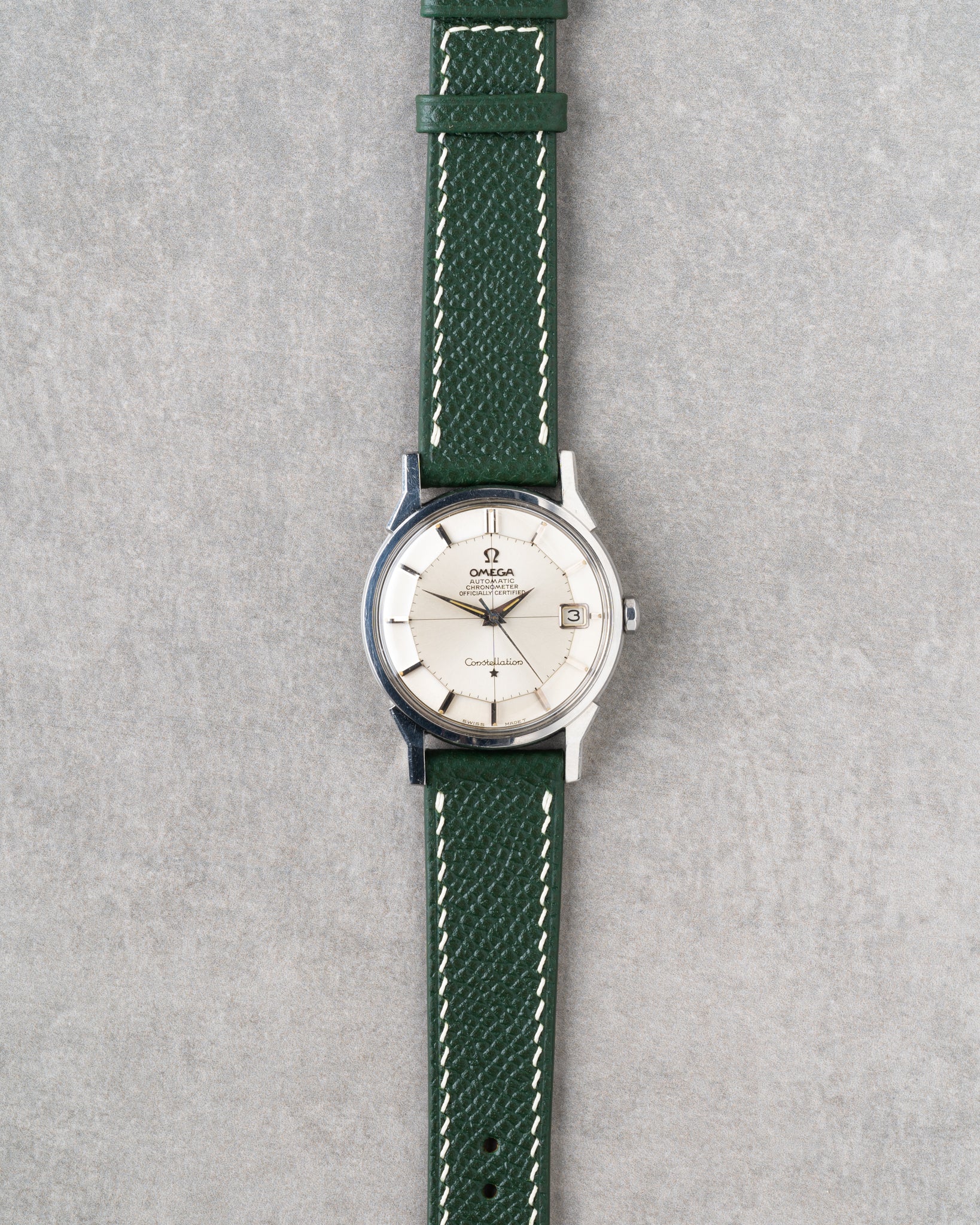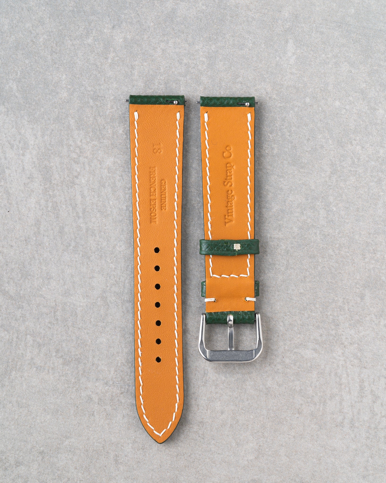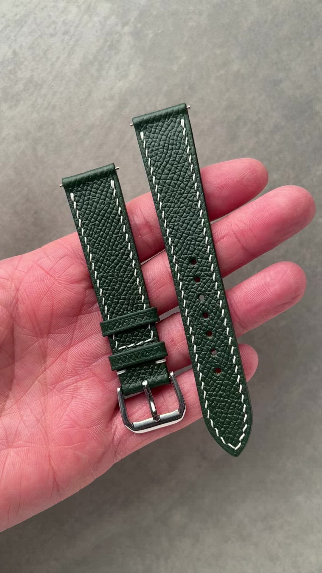 Genuine French Epsom Watch Strap in Dark Green with Cream Stitch