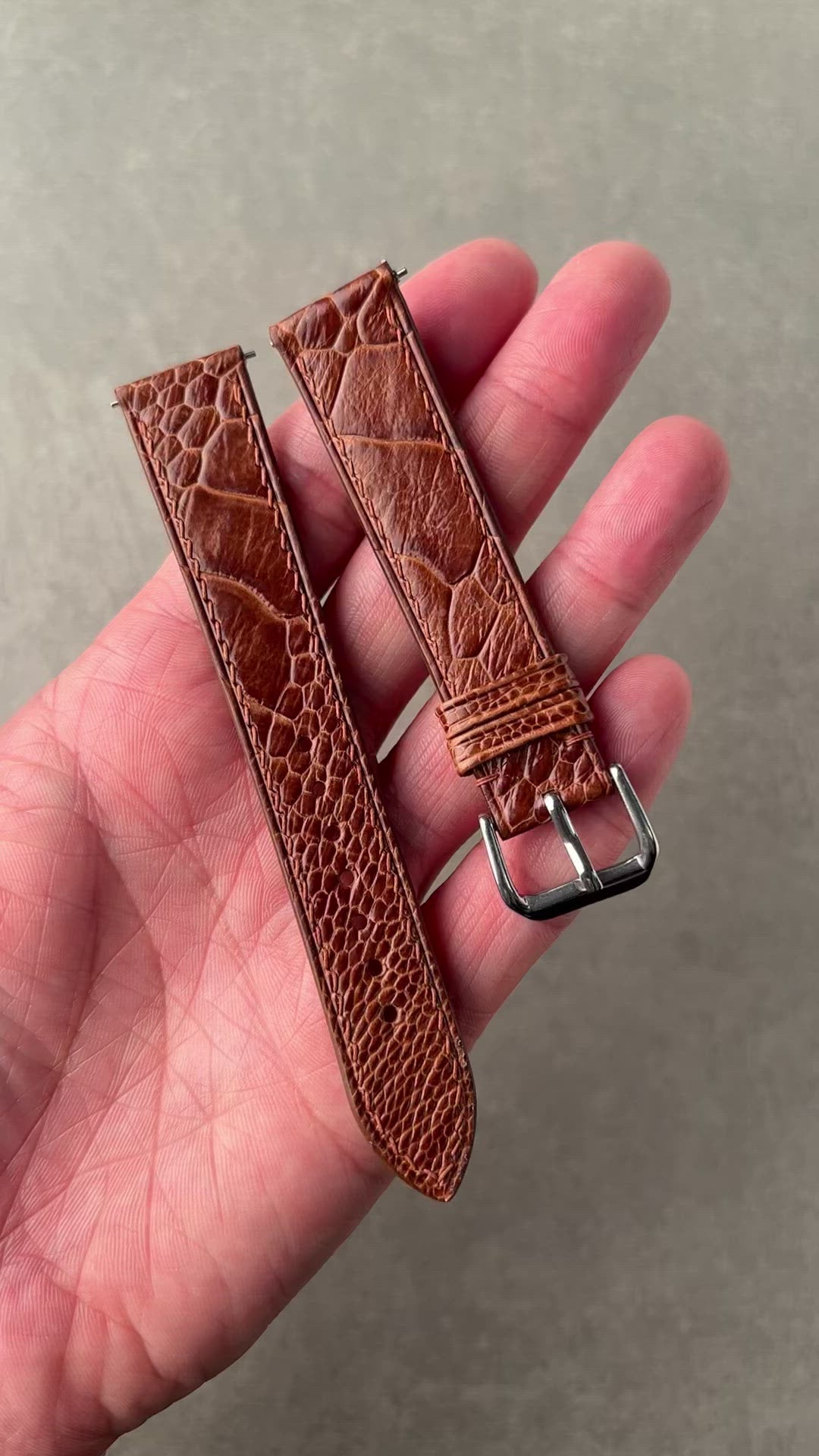 Genuine Ostrich Leg Leather Watch Strap in Rooibos Tea with Brown Stitch