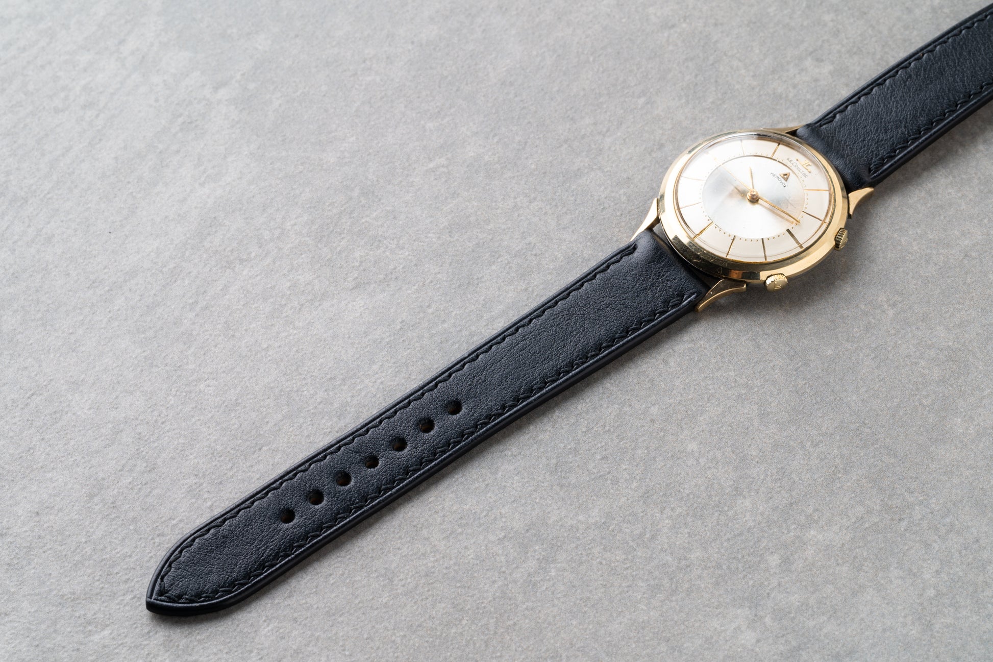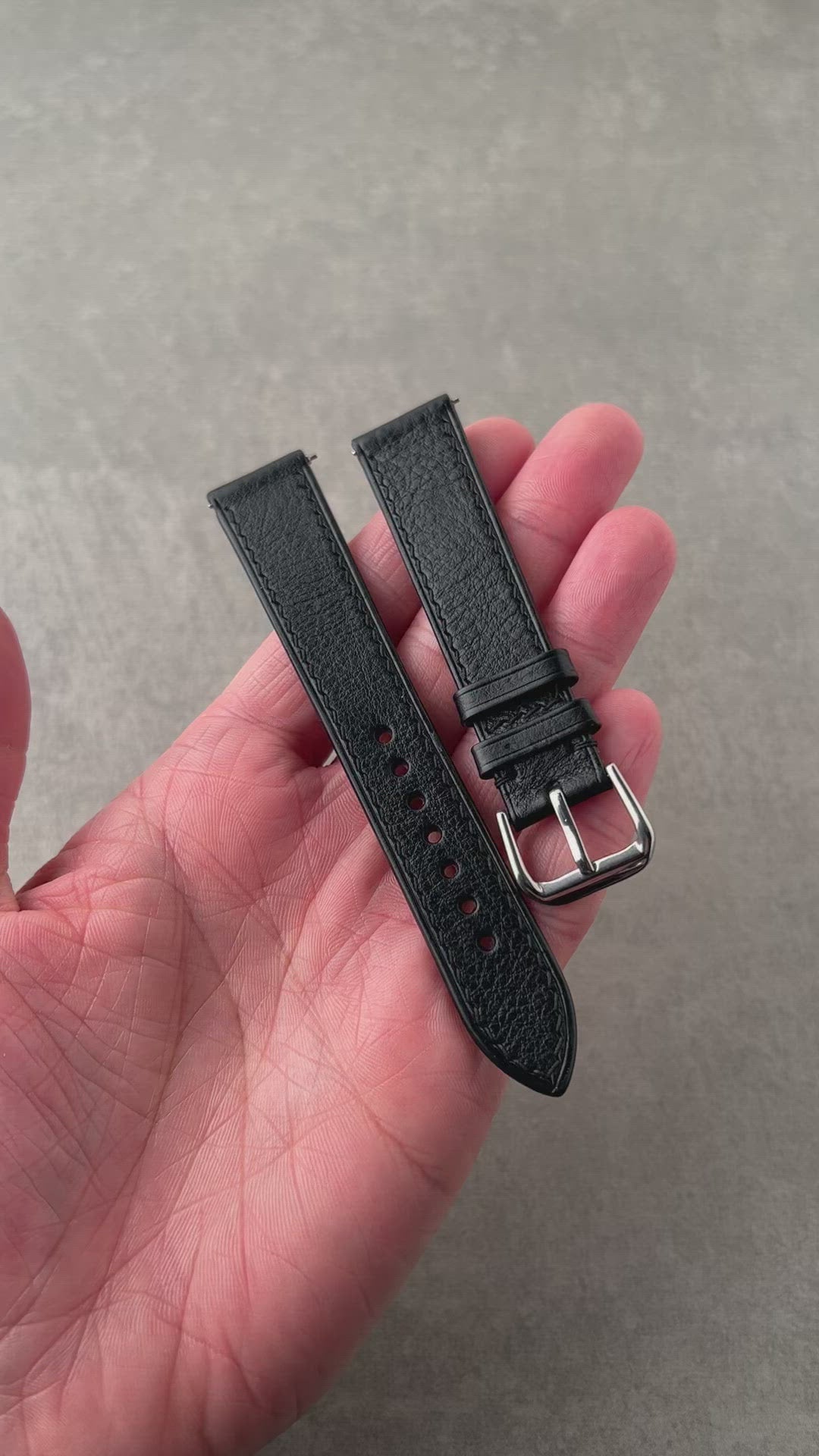 Genuine Vachetta Calf Leather Watch Strap in Black with Black Stitch