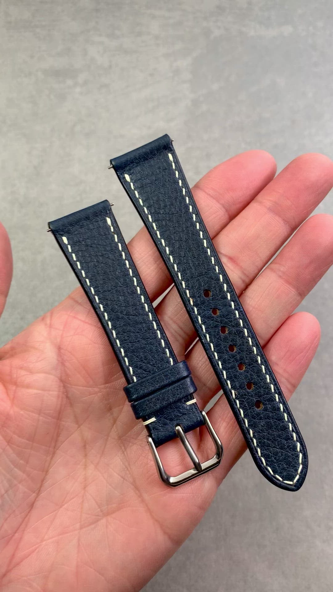 Genuine Vachetta Calf Leather Watch Strap in Navy with Cream Stitch